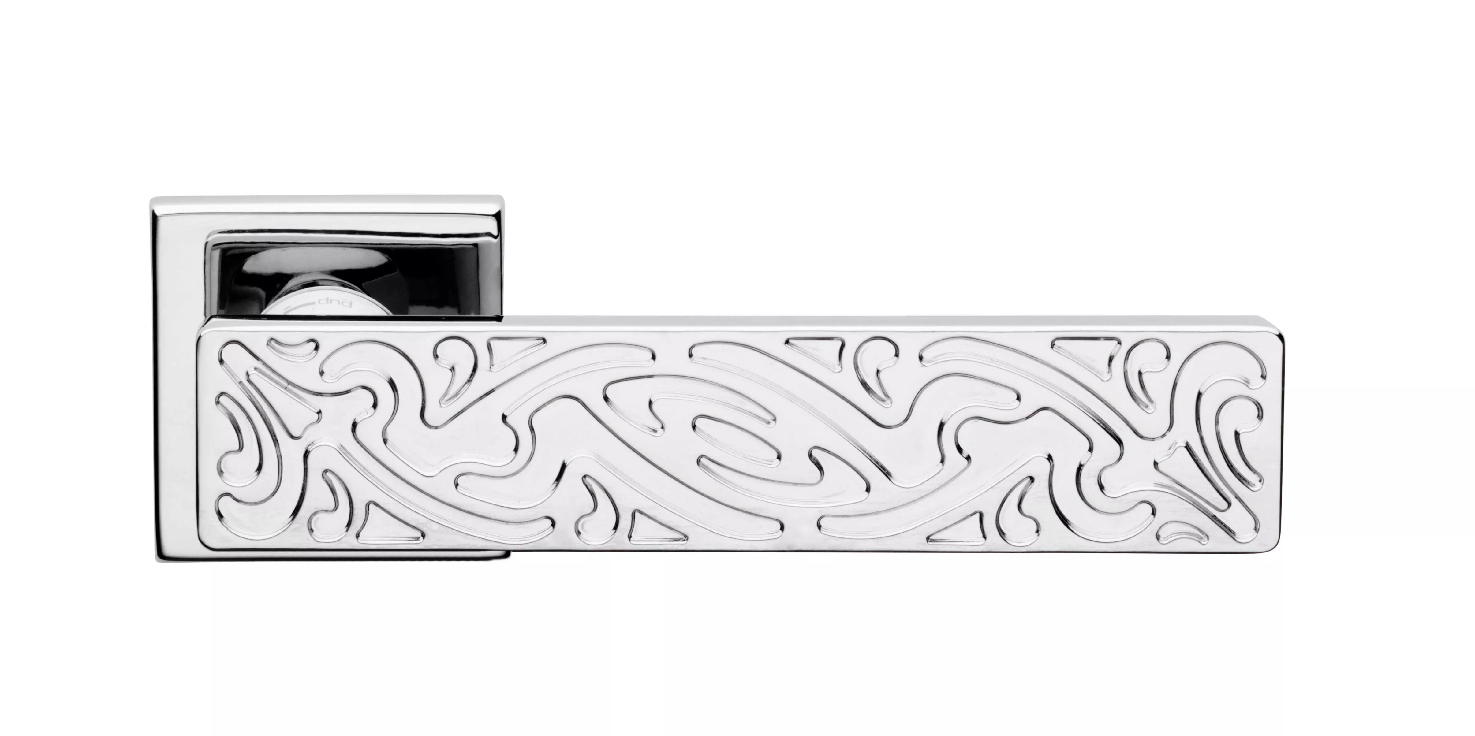 В дизайне ручки SoCHIC совместилось стремление к практичной функциональности формы и яркой индивидуальности ее внешнего вида. Прямоугольная поверхность нажимной ручки украшена рельефным орнаментом, что выделяет ее, как на дверном полотне, так и в общем интерьере помещения.